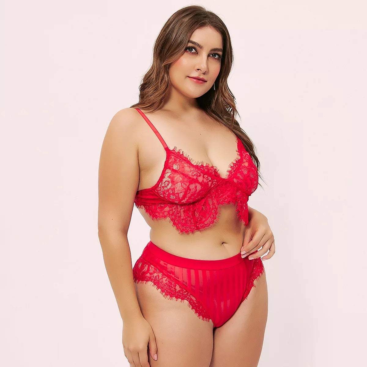 Sexy red two piece lace bra and panty set Plus size