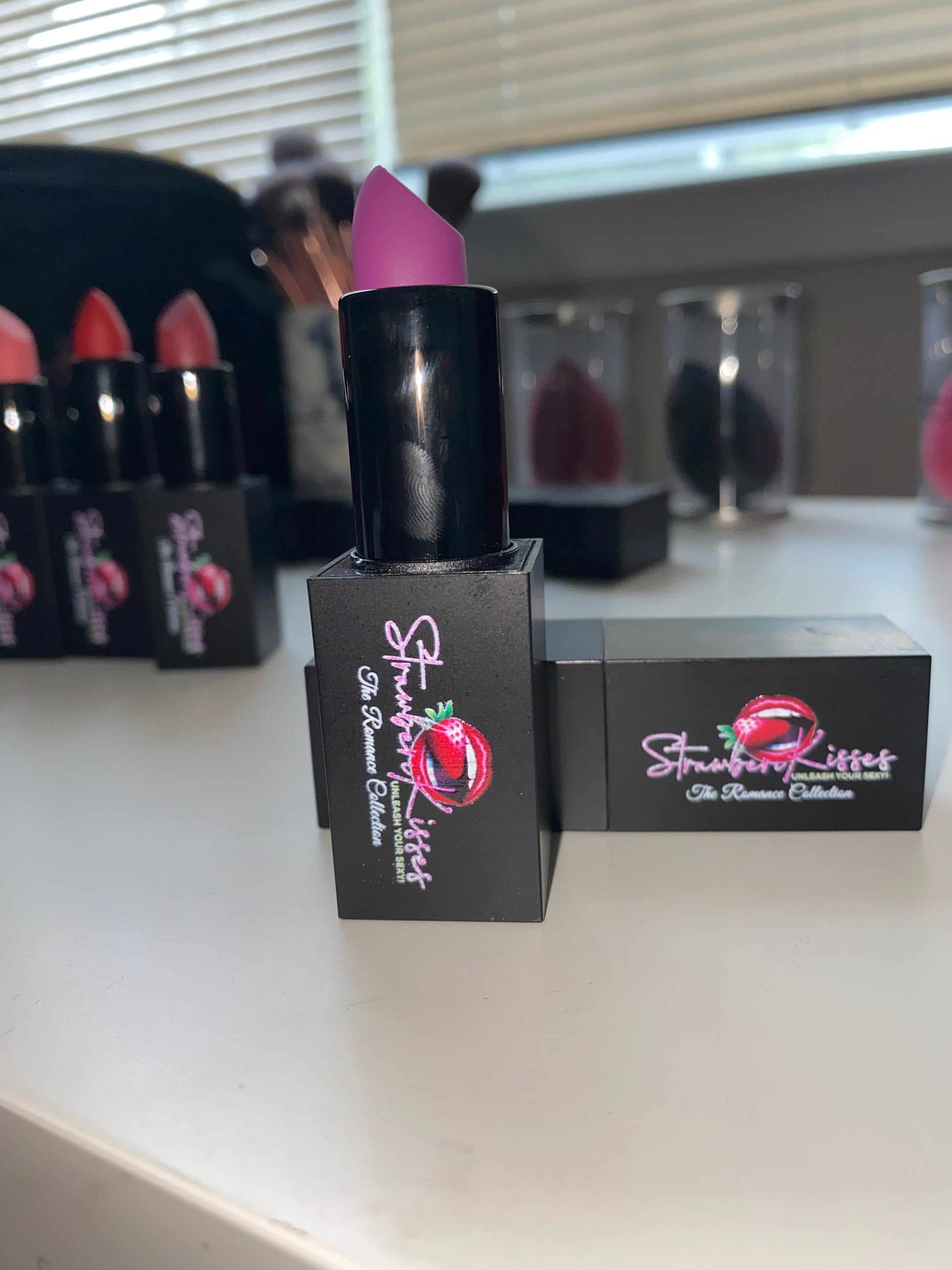 A fearless bright purple matte lipstick made for pure, unapologetic desire. Saturated, electric, and intoxicating, this bold violet shade ignites the lips with high-voltage color that feels decadent, dangerous, and undeniably luxe. The velvety matte formula glides on smooth and sets to a plush, soft-focus finish—dramatic without ever feeling dry.